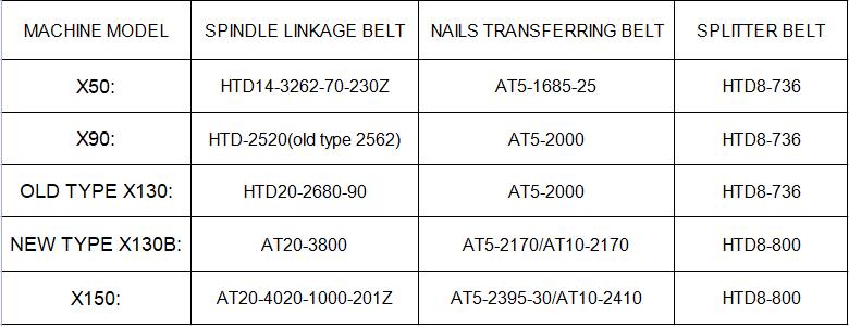 Transferring belt and spindle linkage belt for different model of high speed nail making machine X50,X90,X130,X150